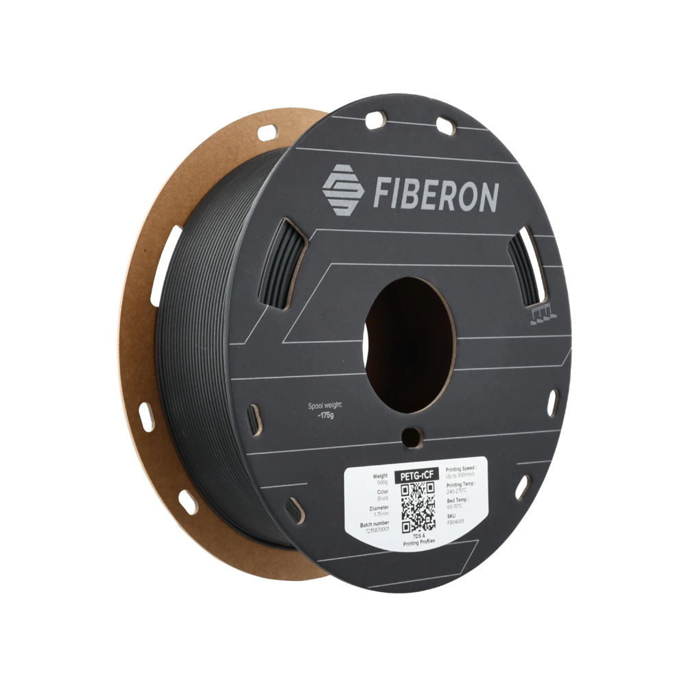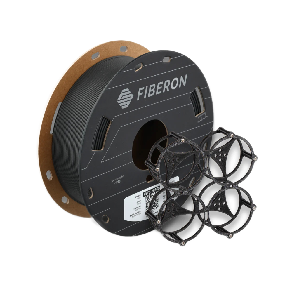 El filamento PETG-rCF08 Fiberon combina la excelente versatilidad del PETG con la rigidez adicional de las fibras de carbono recicladas.