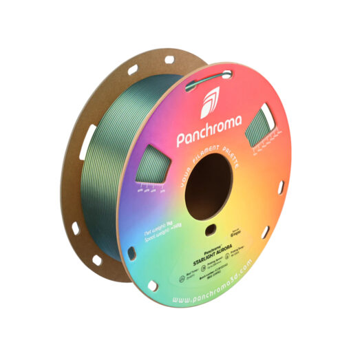 El PLA Panchroma Starlight Aurora está inspirado en los colores del universo, cambiando de color según el ángulo de visión y la luz para crear un efecto fascinante e hipnótico. Permite dar vida a auténticas obras de arte galácticas, destacando con colores deslumbrantes que danzan en armonía con los preciosos reflejos de luz.